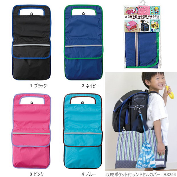 ランドセルカバーは、ランドセルに取り付けるだけで、増えたポケットに小物から体操着、上履きもしまえるスグレモノ。