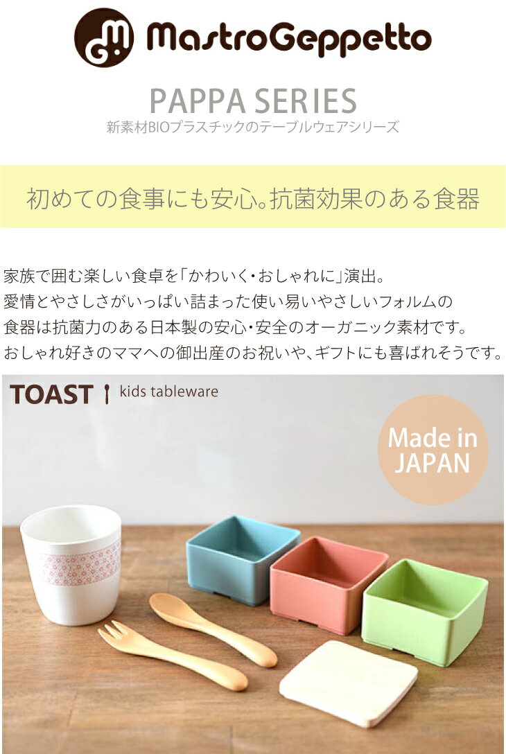 ラッピング 包装紙でのラッピングとなります[のし対応可] ブランド MastroGeppetto 所在国 日本 材質 バイオプラスチック サイズ [マグ] Φ7.0×7.0 [フードボックス] 7×7×11.2(シングルボックス:7×7×3.8) (cm) 原産国 日本今までになかったスタイリッシュなベビー食器。